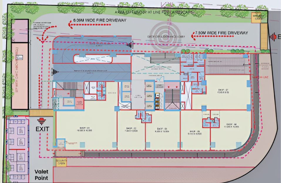 The imposing 30-feet frontage gives Geeta 24 Wallstreet Pimpri Gaon a commanding street presence, increasing visibility for retail and branding.