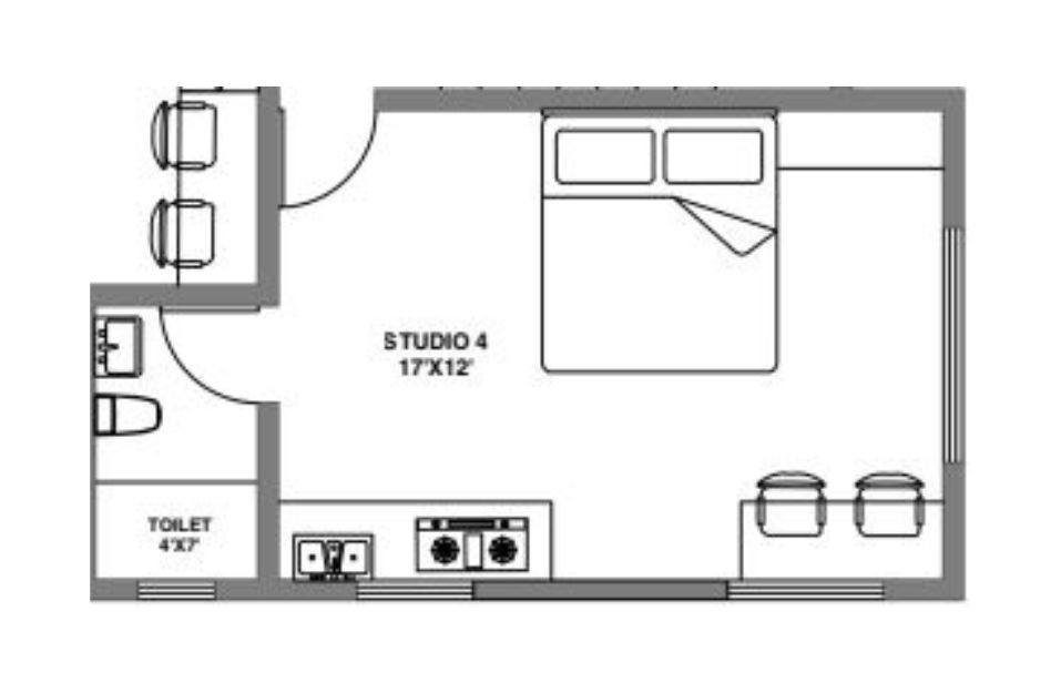 4. What configuration is available at 28 Courtyard Studio Apartment?
