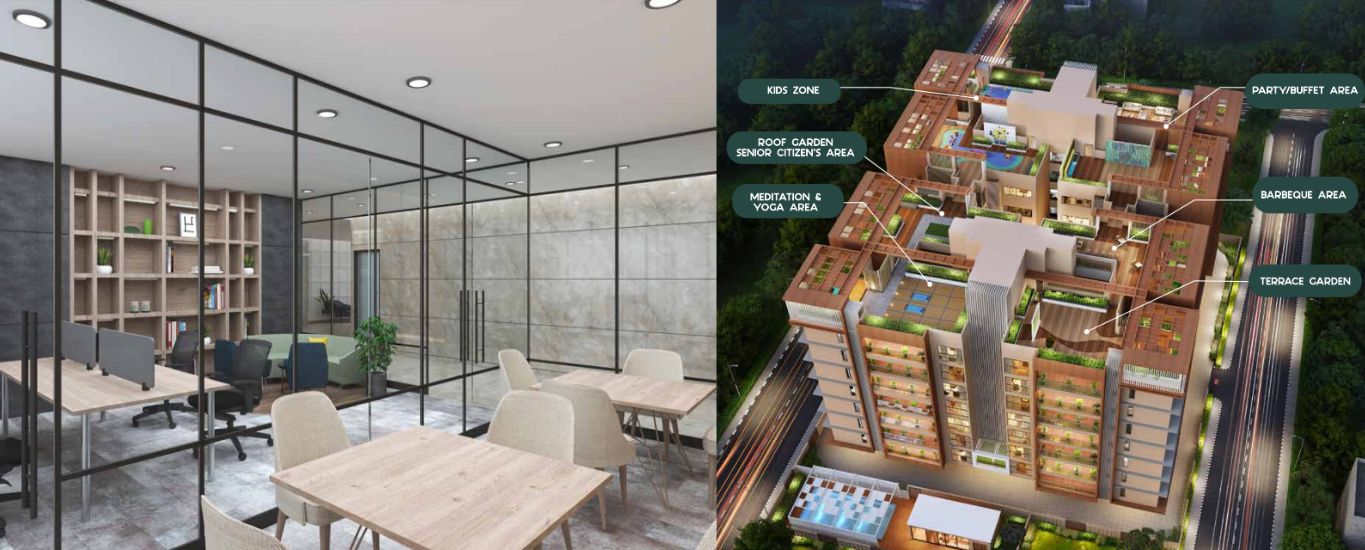 Recreational Spaces: The project offers a fully equipped gym, swimming pool, rooftop garden, and dedicated meditation and yoga areas.