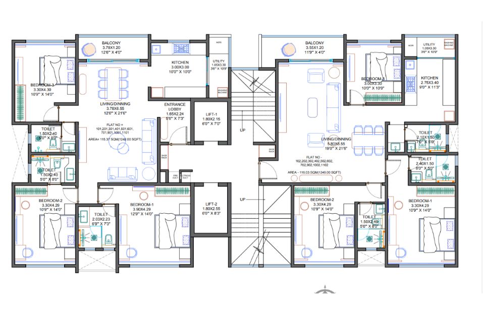 | Type | Project/Phase Name | Tower | Total Carpet area (sq.m) |