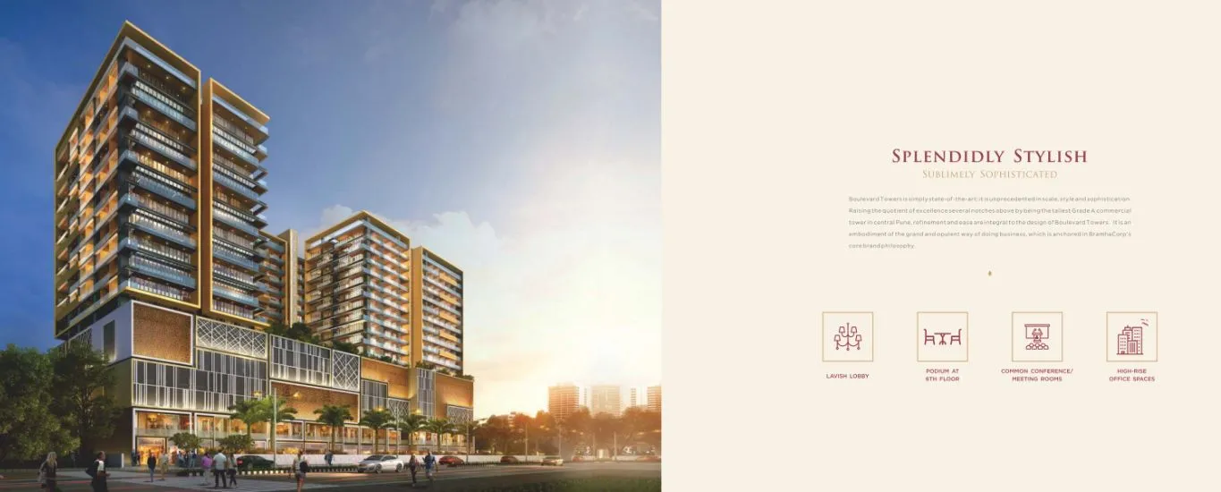Introduction: Welcome to Boulevard Towers Camp Pune an extraordinary addition to Pune's skyline by BramhaCorp that transcends the conventional definition of commercial properties. This landmark establishment redefines excellence in commercial spaces, merging functionality with sophistication, setting new benchmarks and becoming an epitome of luxury and efficiency.