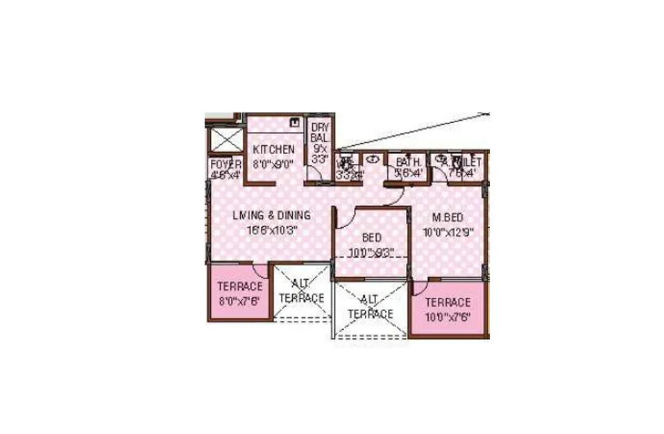 | 2 BHK | Dhruva | Bldg-A,B | 74.32 | On Request | 800 | 0.000 | 63.29 Lakhs*Onwards |
