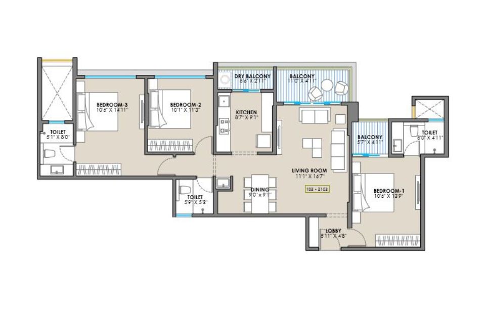 The interior design of Sky Tower Bavdhan emphasizes spaciousness, natural light, and optimal ventilation. Homes are designed to provide a seamless connection between different functional areas while maintaining privacy for individual family members. 3 & 4 BHK Apartments in Bavdhan are thoughtfully crafted to cater to varied lifestyle requirements: