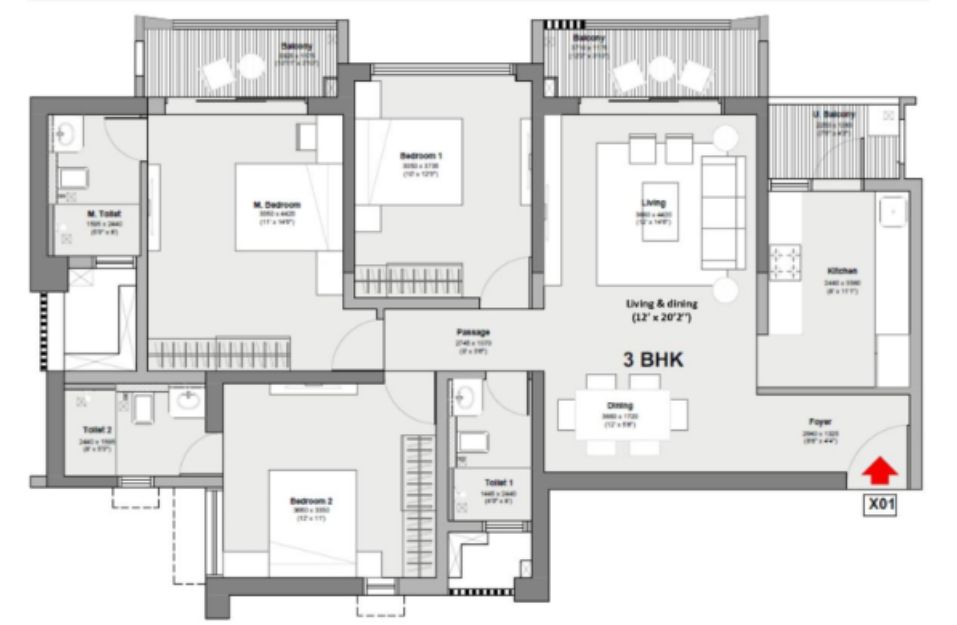Total Carpet area (sq.ft) |
