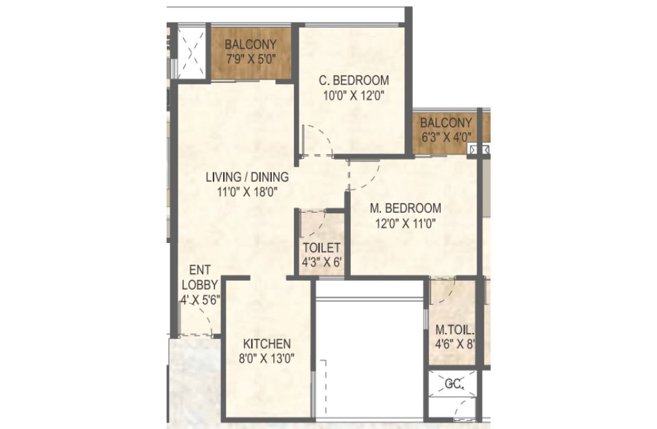 | 2 BHK | Lush Residences A,B,C,D, & F | B&C Building - Typical Floor Plan | 66.24 | On Request | 713 | 0.000 | 89.09 Lakhs*Onwards |
