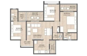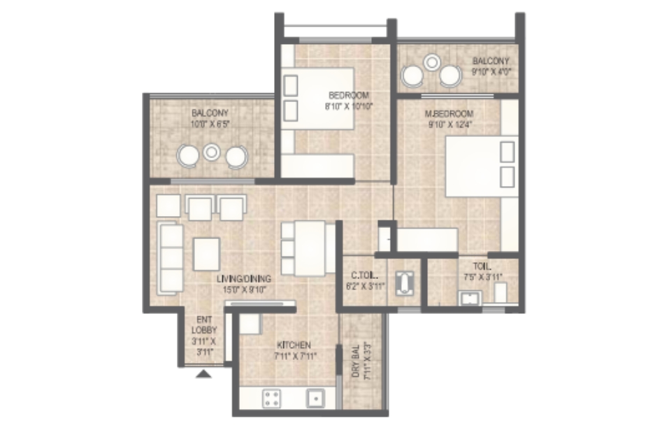 2 BHK | Building-A,B,C,D | 4 | 85.10 | On Request | 916 | 0.000 | 58.86 Lakhs*Onwards |