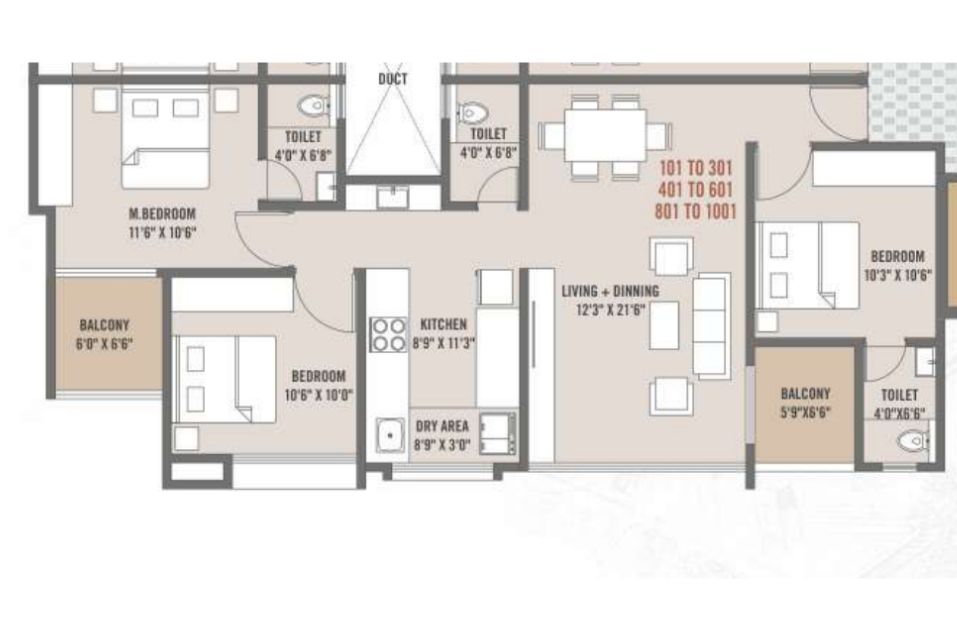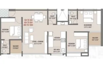 | 3 BHK | Meridian Square Wing A, B & C | 3 | 91.97 | On Request | 989.956 | 0.000 | 1.01 Cr*Onwards |