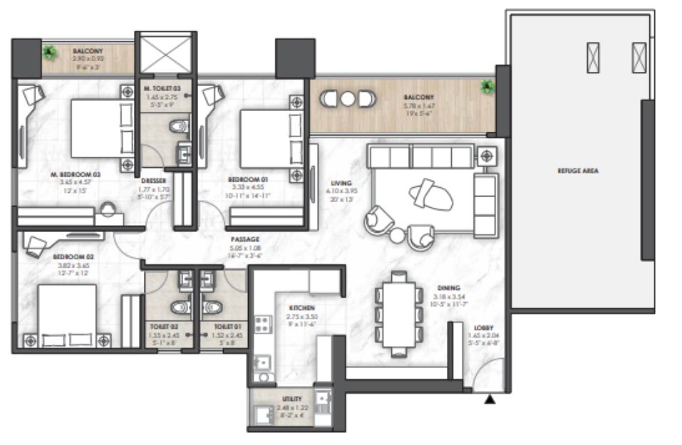 | Type | Project/Phase Name | Tower | Total Carpet area (sq.m) |