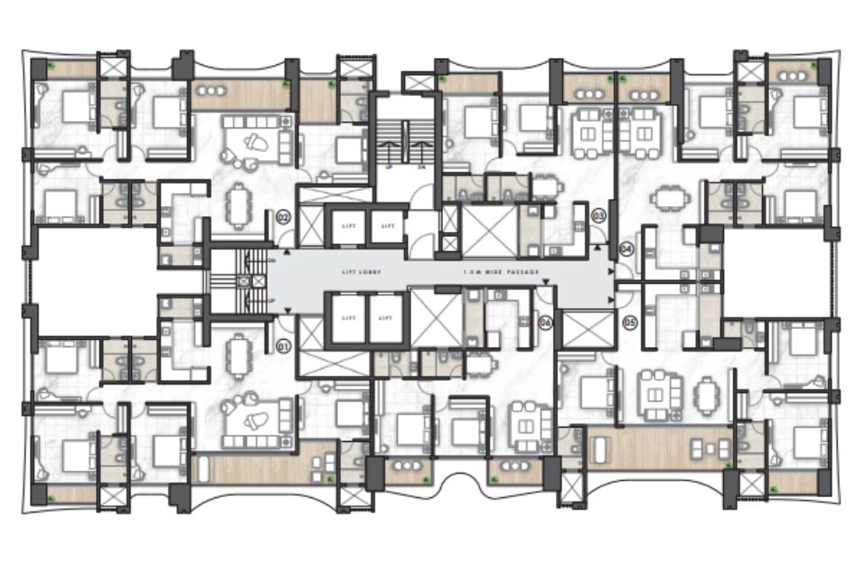 What makes Nyati Evania by Nyati Group stand out is its extensive range of amenities. Spread across 45,000+ sq. ft., the development houses over 40 lifestyle features. Indoors, residents can access a state-of-the-art gym, yoga and aerobics studio, library, co-working spaces, banquet hall, and home theatre. Outdoors, facilities include a swimming pool, multipurpose sports courts, cricket pitch, jogging track, landscaped gardens, and senior-friendly pathways. The project is thoughtfully designed to cater to every family member, from children to elders.