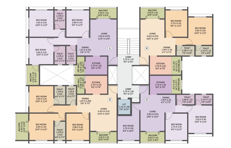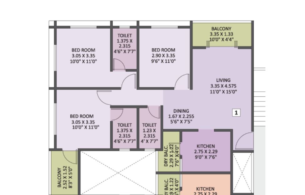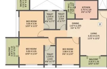 | 3 BHK | Wing-A,B,C,D,E,F | 6 | 85.19 | On Request | 917 | 0.000 | 75.62 Lakhs*Onwards |