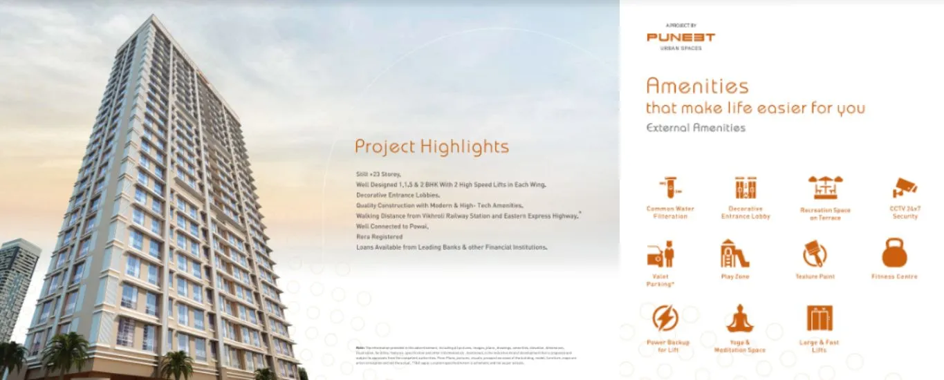 Discover Puneet Shivalaya,Vikhroli East, Mumbai a luxurious G+23 project offering a range of 1, 1.5, and 2 BHK homes designed for excellence and comfort. Our well-designed apartments feature an array of modern amenities that redefine the standard of living. From quality construction to high-tech features, we've created a peaceful world where luxury knows no bounds.