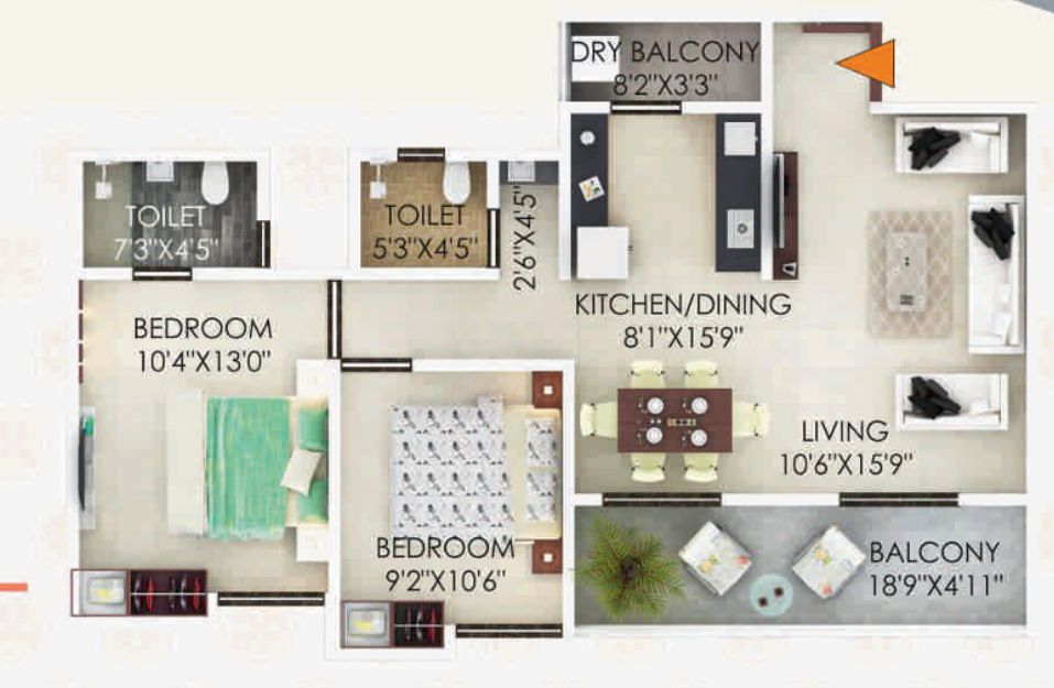 2 BHK | The Rao Heights | 1 | 75.90 | On Request | 817 | 0.000 | 57.25 Lakhs*Onwards |