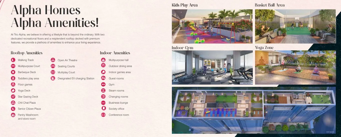 This is where ultimate luxury begins. Presenting "TRIO ALPHA" by 'TRIO SPACES', Premium apartments that will sweep you of your feet. A project for the Ones who prefer to live in the upper crust. With just 2 Ultra Spacious 4BHK homes on each Floor, which is nothing short of your private oasis.