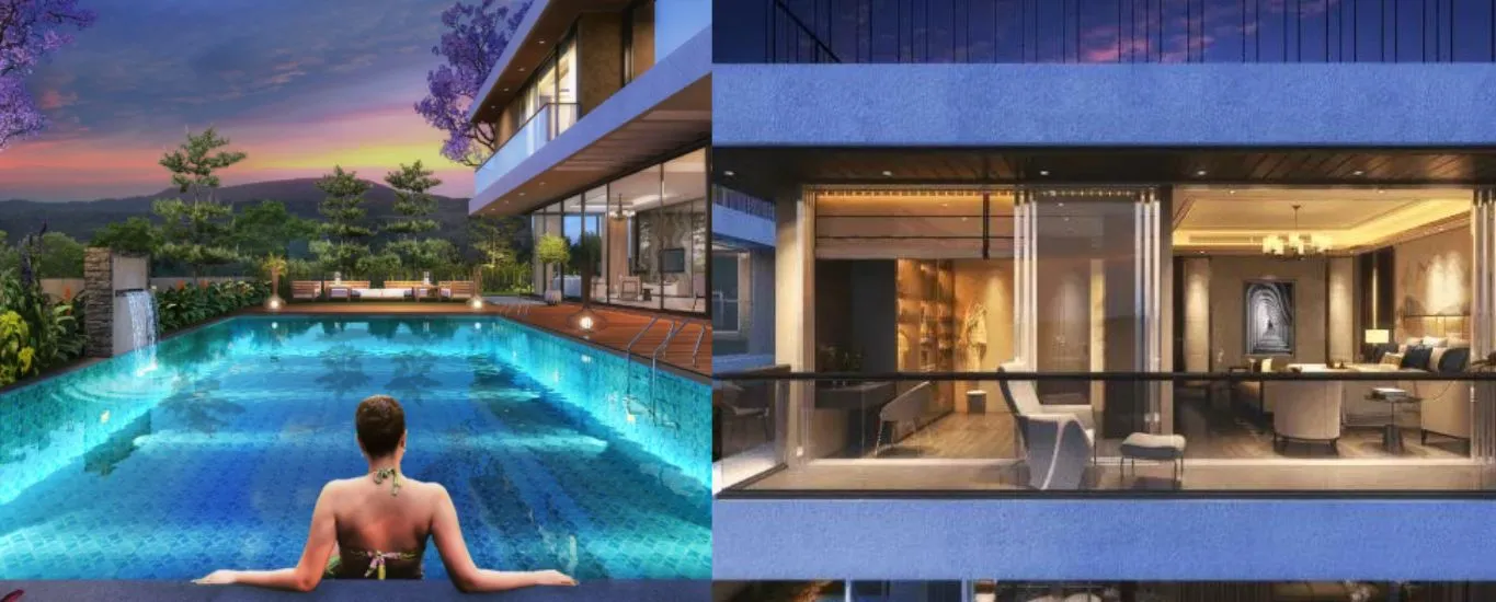 Each villa at Vogue 25, Lonavala, is meticulously designed to leave a lasting impression, offering a landscape area complete with a swimming pool adjoining the living room. Step onto balconies that overlook both individual and central landscapes, creating a harmonious blend of nature and luxury.